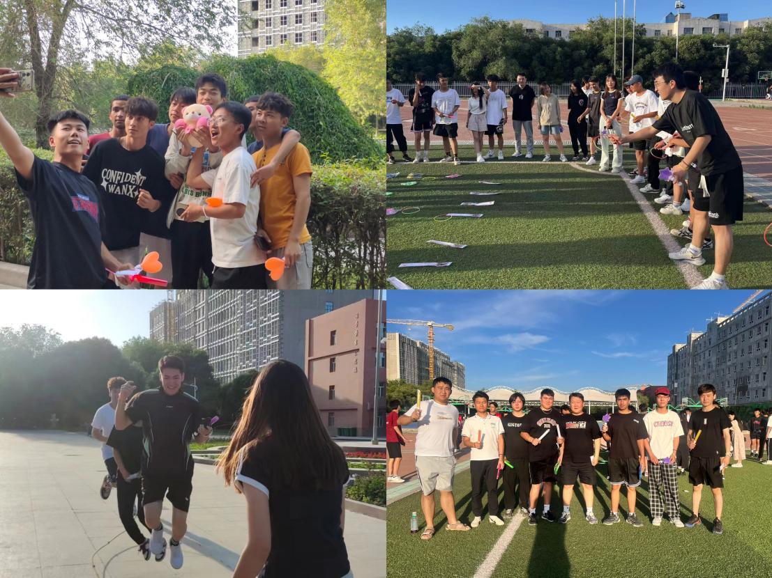 活动开始前,同学们在土木楼前集合,在工作人员的引导下,有序排队签到,领取号码牌和荧光棒等物资。同学们仔细听工作人员讲解的活动规则及注意事项,并在领队的带领下做了热身运动,随着一声号令,各参赛队伍前往6个站点完成任务,站点设置了照猫画虎、“绳”彩飞扬、神探柯南、踏寻踪迹、解锁“密匙”、趣味套圈六个项目。