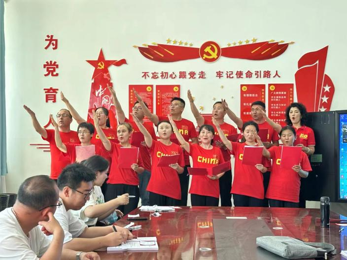 活动由庄严的《国际歌》拉开帷幕,党总支书记樊梦兵带领全体党员重温入党誓词。党员先锋岗代表翟磊老师和大家一起分享了自己入党的动机以及在党组织内的成长,情真意切,让人动容,她说:“入党20年,经历企业的风雨变换,来到学院虽然只有短短的两年时间,但我感到心里的平静、纯净与安宁,繁忙中有快乐,也见证了共产党员的榜样作用,我要用一生的奋斗去践行自己最初的诺言,感恩党,感恩伟大的祖国!”