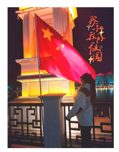 第二阶段为9月29日至10月3日,两个社团向全校发出“我与国旗合个影”图片视频征集令,同学们积极响应,纷纷投来自己的作品。征集活动共收到百余份作品,既有图片,又有视频作品,每一份作品都饱含对祖国深深的热爱与祝福。同学们用自己的方式向祖国母亲75华诞表达着最真挚的祝福,在操场、升旗台、大街小巷、广场等与国旗合影,那一抹鲜艳的红色,如同燃烧的火焰,点燃了每个人心中的爱国热情。