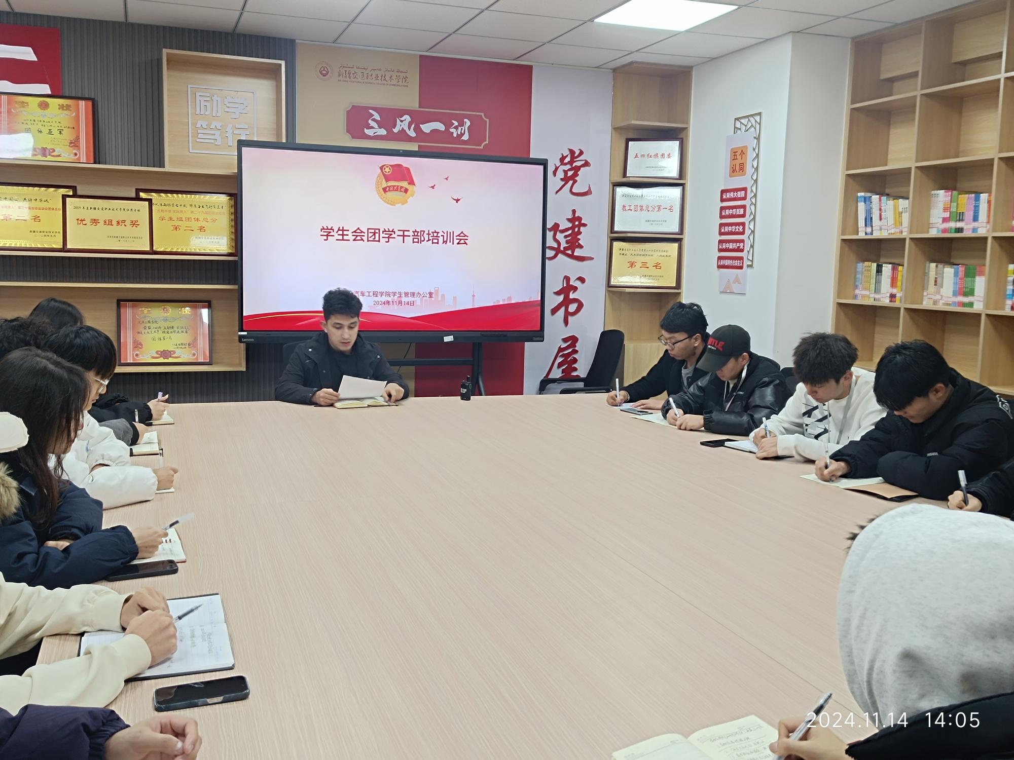 为进一步提升学生干部的综合素质和工作能力,充分发挥学生干部的引领和模范作用,建设一批政治坚定、品学兼优、能力过硬、作风优良、敢于担当的学生骨干队伍,11月14日,汽车工程学院在一站式红色书屋开展了学生会团学干部培训会。
