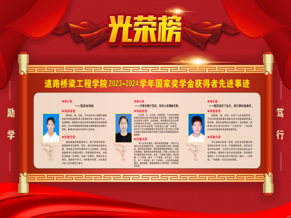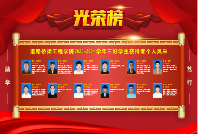 此次宣传版面的更新,不仅美化了教学环境,更重要的是营造了一种积极向上的学习氛围,激励着每一位道路桥梁工程学院的学生以榜样为镜,见贤思齐,不断追求自我超越。未来,道路桥梁工程学院将继续深化此类活动,让榜样的力量成为推动学院发展、促进学生成长的重要动力。