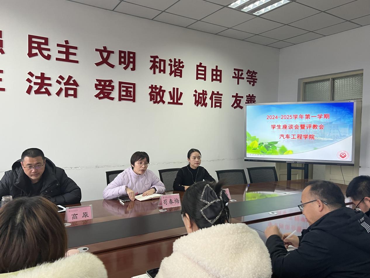 12 月 4 日下午,汽车工程学院召开 2024 - 2025 学年第一学期学生座谈会暨评教会。院长苟春梅、党总支副书记高原、副院长董静及全体教研室主任、专业负责人与各年级学生代表齐聚一堂,共话学院发展。