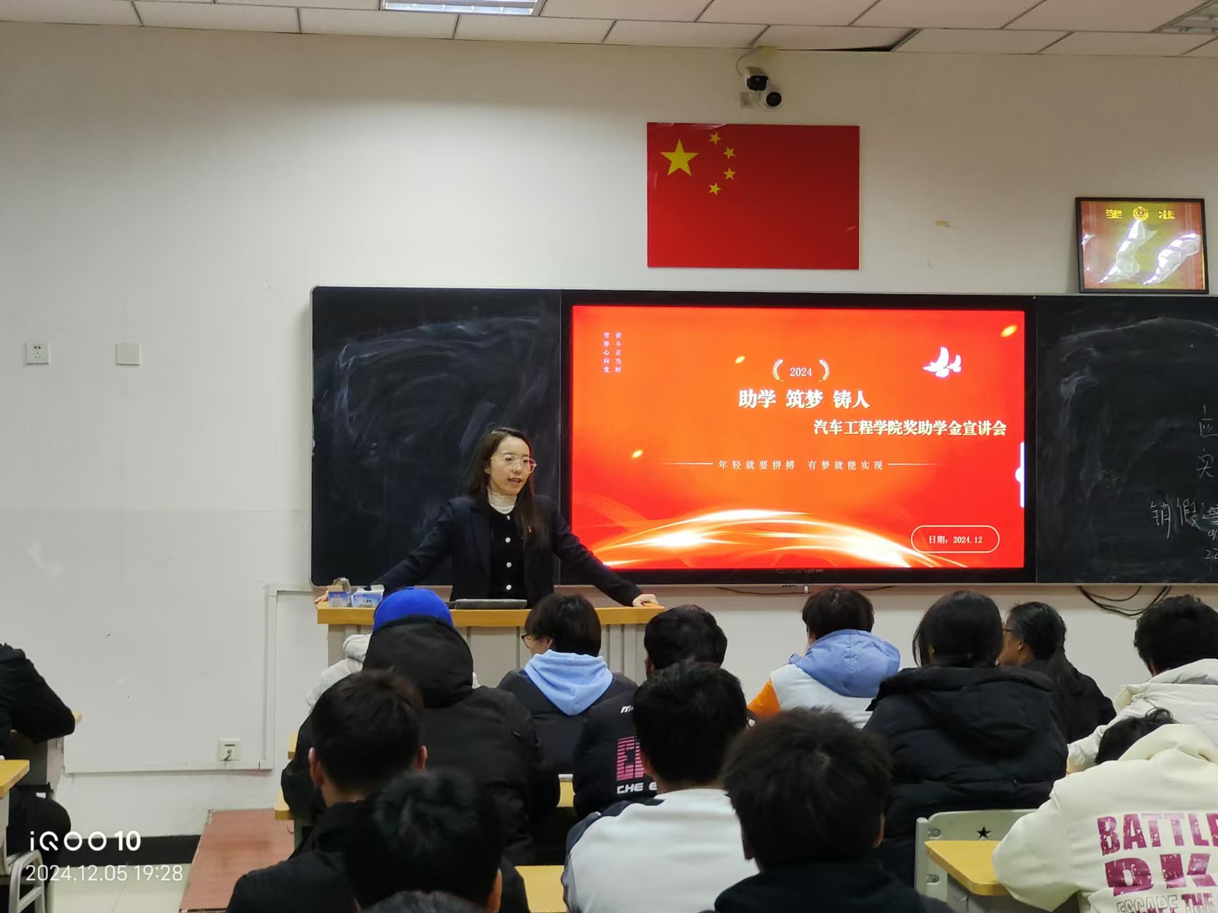 12 月 5 日,汽车工程学院于综合楼 513 教室举办“助学 筑梦 铸人”奖助学金宣讲会,充分发挥奖助学金获得者的榜样力量,拓展学生资助工作的育人功能。