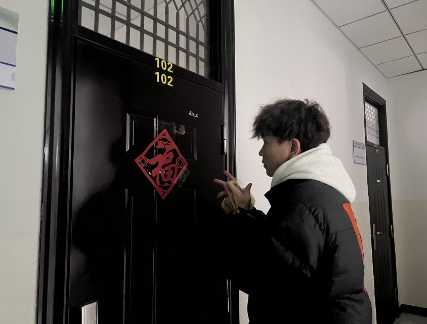 此外,活动现场还设置了暖心的“送温暖”环节。同学们可以将自己亲手制作的剪纸作品赠送给现场的老师、同学。同学们将剪出的‘福’字张贴在一站式和二号教学楼各个老师办公室门口,提前为各位老师新年送上真挚祝福,让浓浓的中国风与温暖情谊在校园里弥漫开来。一幅幅剪纸仿佛带着同学们的敬意与关怀,瞬间让平日里略显严肃的办公室门口变得温馨起来。
