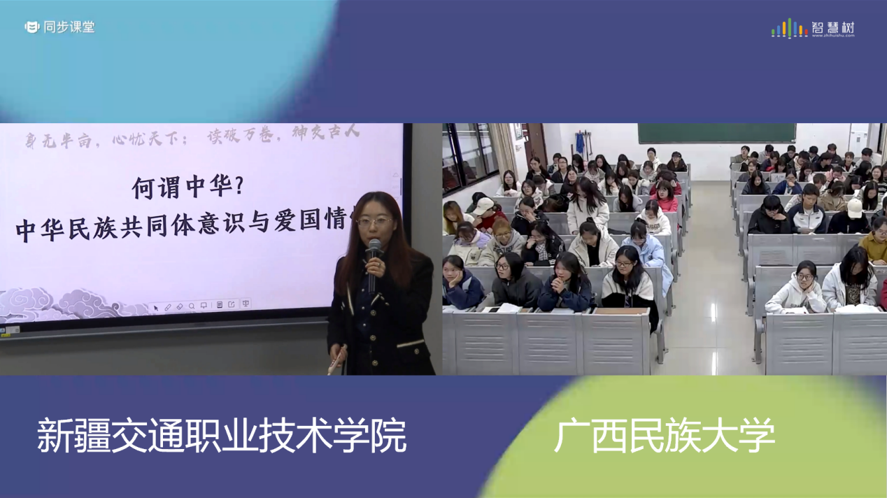 12 月 12 日,新疆交通职业技术学院与广西民族大学开展了本学期《中华民族共同体概论》的最后一次同步课堂。尽管两地气候迥异,但通过云端互联,双方师生共探“文明新路与人类命运共同体”,分享新疆在“中华民族一家亲、同心共筑中国梦”实践中的宝贵经验。