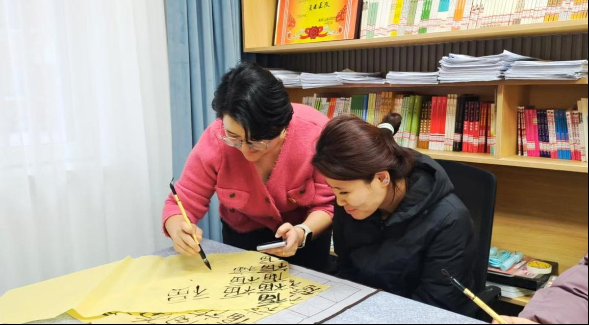 活动开始,赵晓雪老师为大家讲解冬至的来历与文化内涵,“冬至如大年,人间小团圆”这句俗语也体现出人们对冬至的重视。随后,同学们在老师的指导下学习如何让执笔,将新春祝福融入笔端,专注于福字书写。红红的福字,承载着大家对美好生活的期许,象征着新年福气满满。