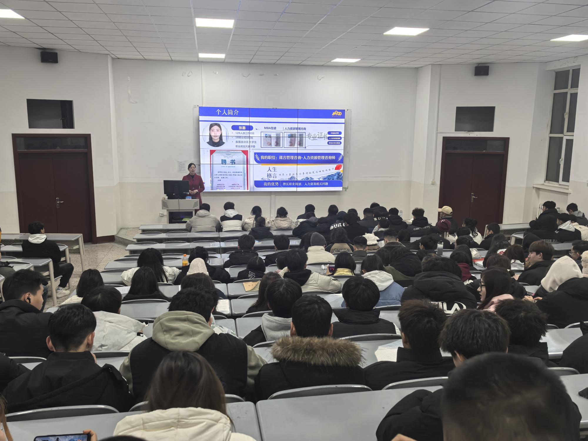 特聘讲师冯昊在“高职类学生生涯规划”讲座中,详细介绍了当前社会的职业分类、发展趋势以及不同职业的工作内容和要求,帮助学生们拓宽视野,拓宽职业选择范围。并深入剖析了大学生涯的关键要素,包括专业选择、课程学习、实习实践、社团活动以及个人兴趣爱好的培养等,鼓励学生们不仅要注重学业成绩,更要积极参与社会实践和志愿服务,提升自己的社会责任感和团队协作能力。而特聘讲师张惠在“求职准备 - 简历制作与面试技巧”讲座里,以中国新疆人才网为切入点,深入阐释简历制作的“123 原则”与“STAR 原则”,借助案例演示其运用方法,同时纠正了常见错误。在面试技巧部分,张惠介绍了面试问题类型的比例,重点讲解行为问题以及 STAR 原则答题技巧,还全面地提醒学生面试各个阶段的注意要点,为学生提供了一套系统性的求职指导方案,助力学生在求职之路上做好充分准备。