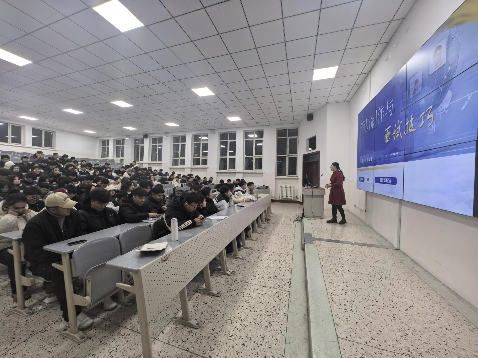 为提升学院就业指导工作水平,推动毕业生高质量充分就业,12 月 19 日,学院招生就业指导办公室特邀北京师范大学科技集团特聘讲师冯昊、经开区人力资源产业集团特聘讲师张惠开展专题讲座,聚焦《高职类学生生涯规划》与《求职准备 - 简历制作与面试技巧》两大主题,为学生学业与职业发展指明方向。