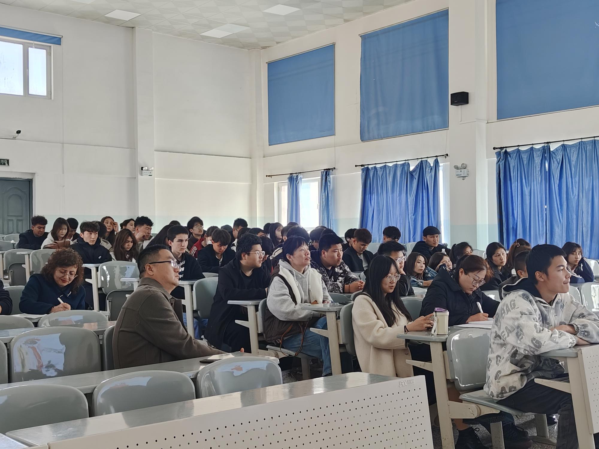 培训会上,依合提达尔·艾力江教官结合校园特点,通过真实案例,详细讲解了火灾的成因、危害及预防措施,并现场演示了灭火器、消火栓等消防器材的正确使用方法。师生们认真聆听、仔细记录,积极提问互动,现场学习氛围浓厚。