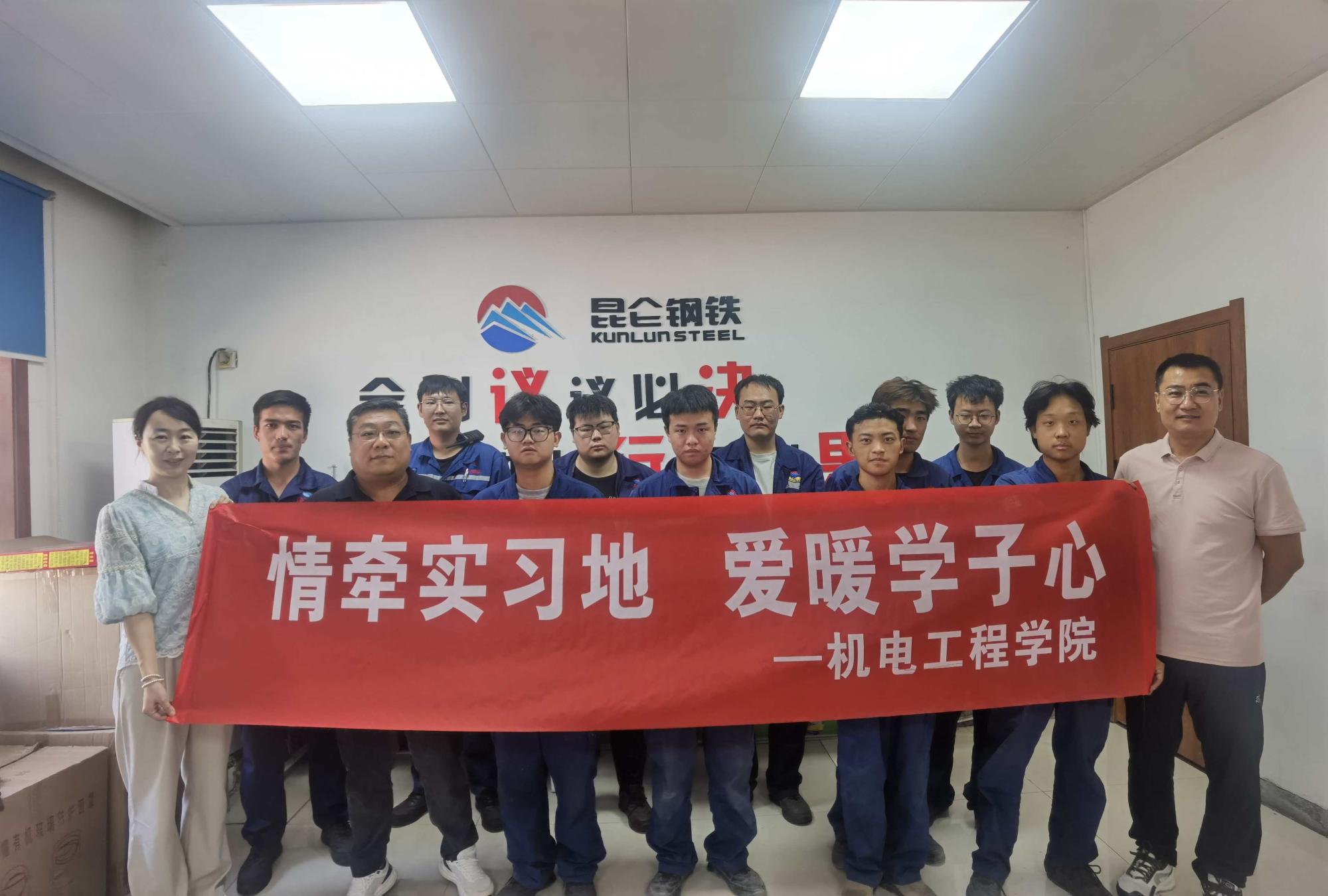 8月28日,机电工程学院教师团队赴五家渠市新疆昆仑钢铁有限公司开展访企拓岗专项活动,并看望2023级在岗实习生。