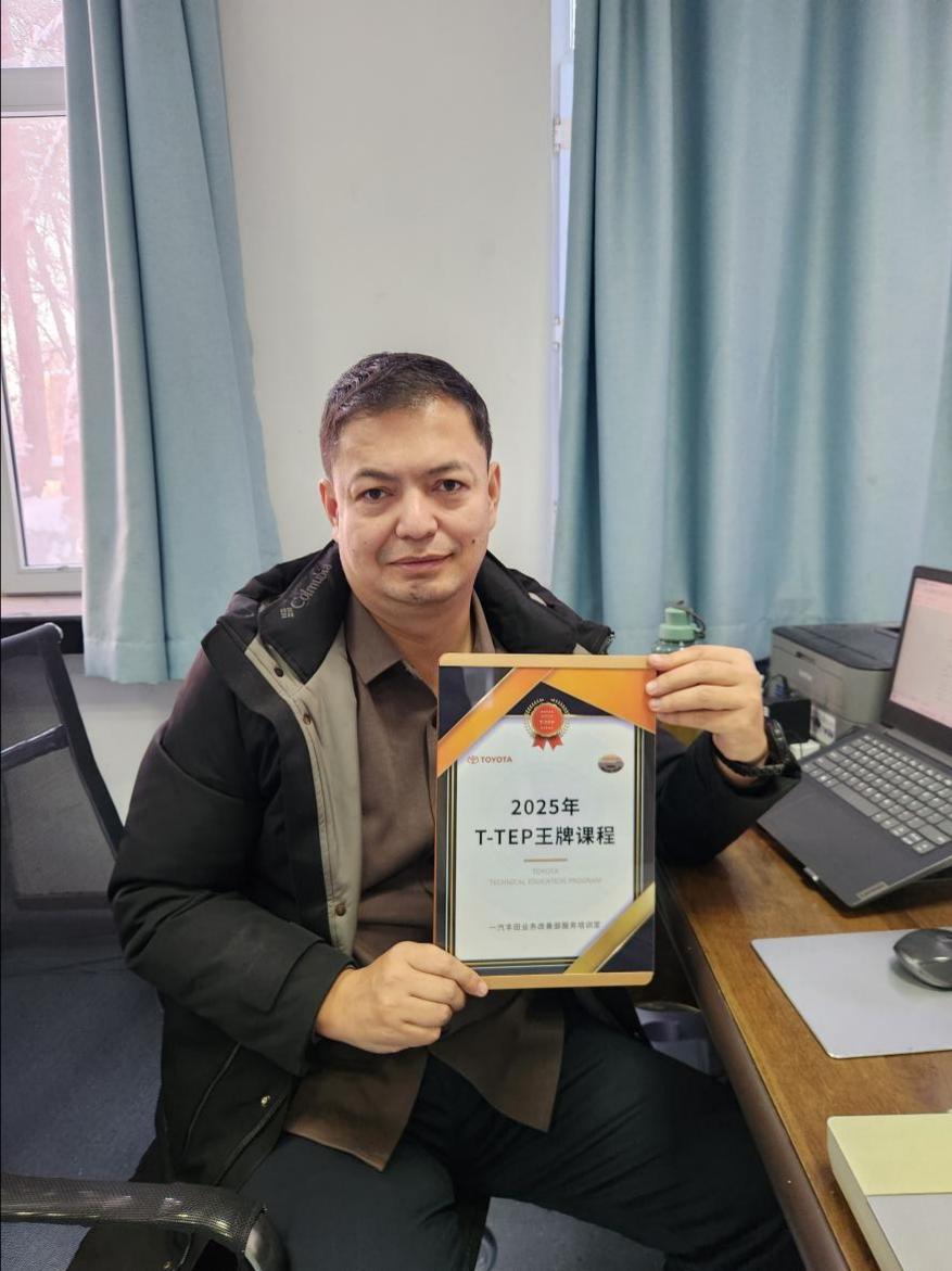 近日,2025丰田T-TEP金牌教师及王牌课程评选大赛落下帷幕,学校老师马尔旦·吐尔逊凭借扎实的专业功底与创新的教学方法脱颖而出,斩获“王牌课程”奖项。