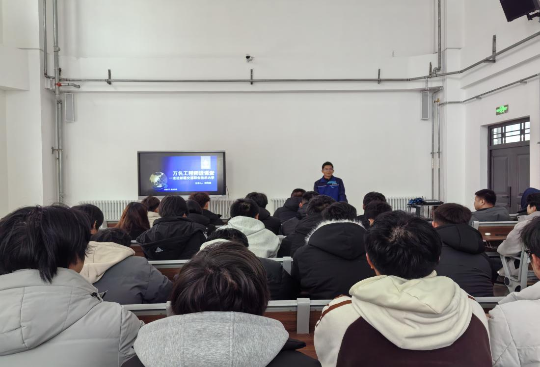 讲座中,郑利康工程师围绕个人与团队介绍展开分享,并对中交机电工程局概况进行了全面介绍;为帮助同学们夯实专业基础,对什么是机电工程进行了具象化的讲解;在认识高速公路环节,系统梳理了高速公路的发展历程、建设标准以及运营管理要点。讲座最后,他聚焦走进乌尉高速,分享了这一重点项目的建设背景、施工难点以及机电工程在项目中的创新应用,通过一张张现场图片带领同学们“沉浸式”感受乌尉高速建设的场景,激发了大家投身交通建设事业的热情。
