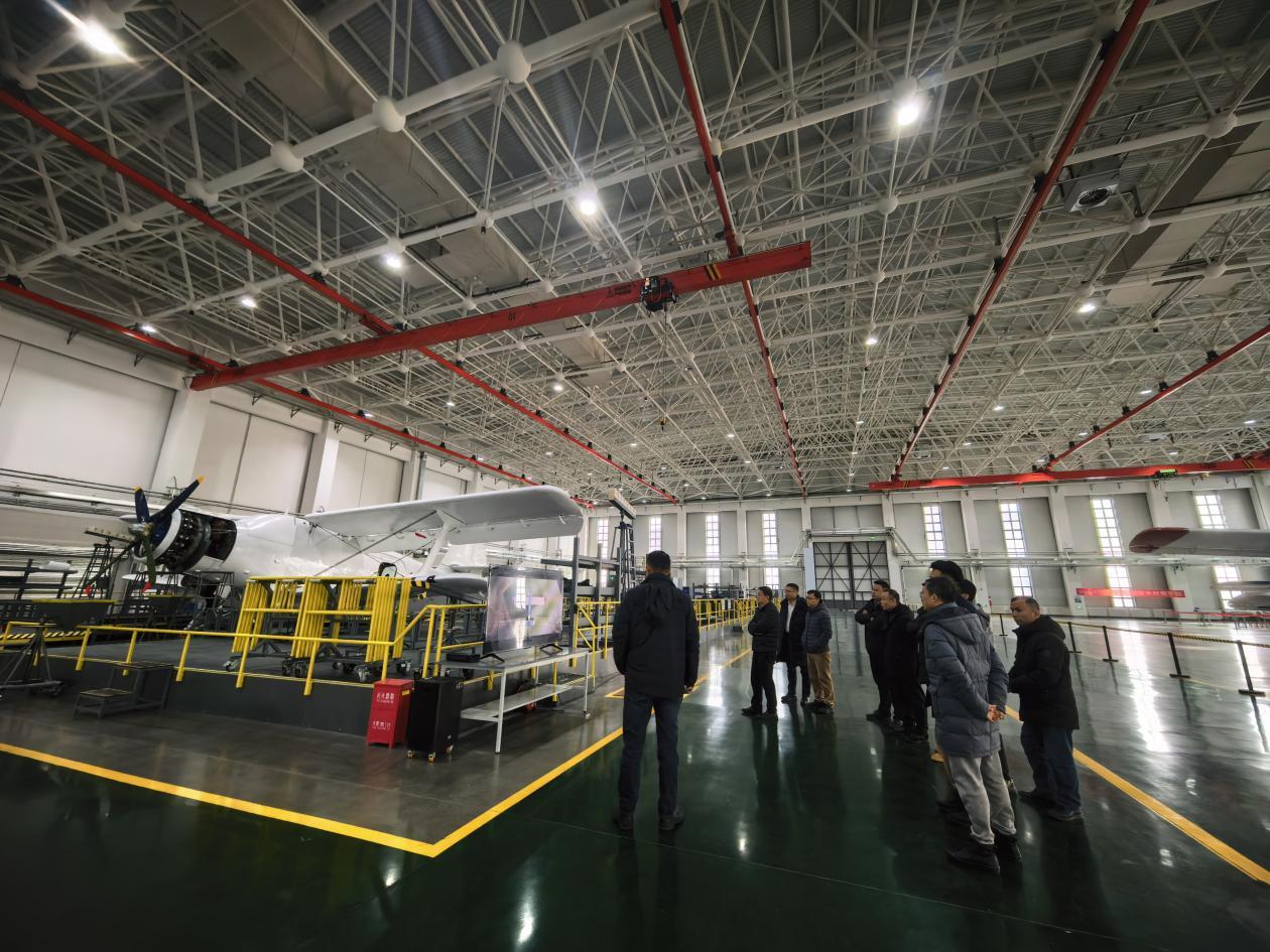 调研团队首先参观了天域航通位于石河子市通航装备制造产业园的生产基地。作为国内唯一集研发、生产、销售、运营、服务于一体的高科技创新型通航企业,天域航通重点展示了其核心产品——鸿雁(HY100)大型无人机。校企双方围绕校企合作、专业建设、企业岗位需求展开深度交流。