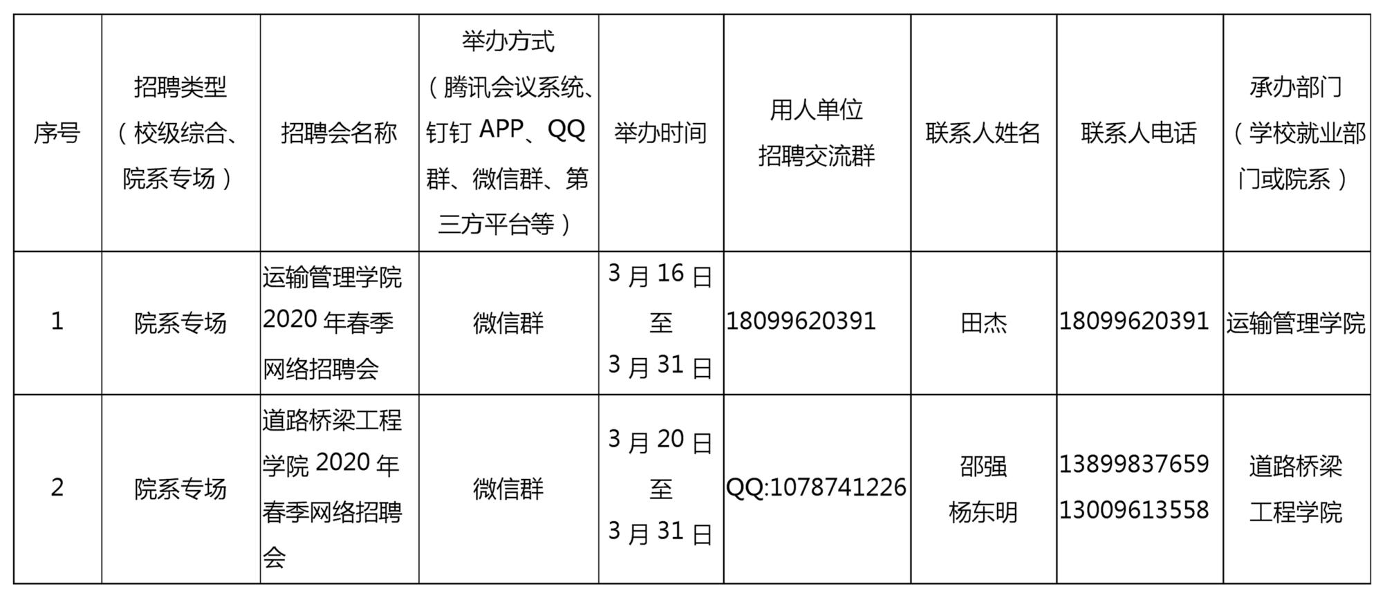 新疆交通职业技术学院2020年毕业生春季网络双选招聘会公告