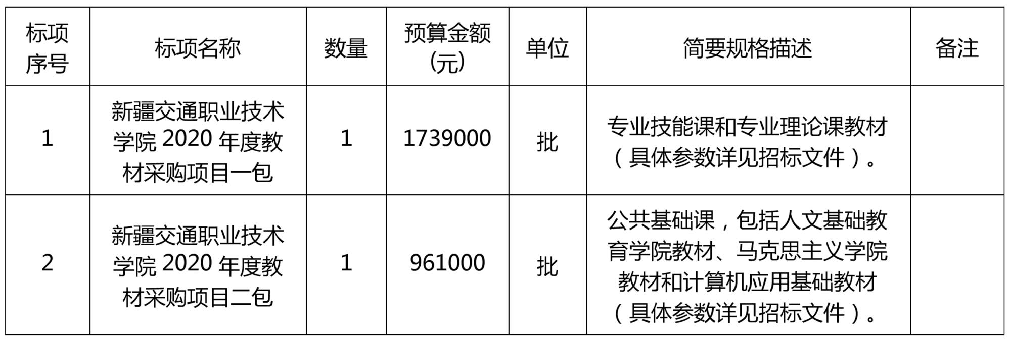 新疆交通职业技术学院2020年度教材采购项目公开招标公告