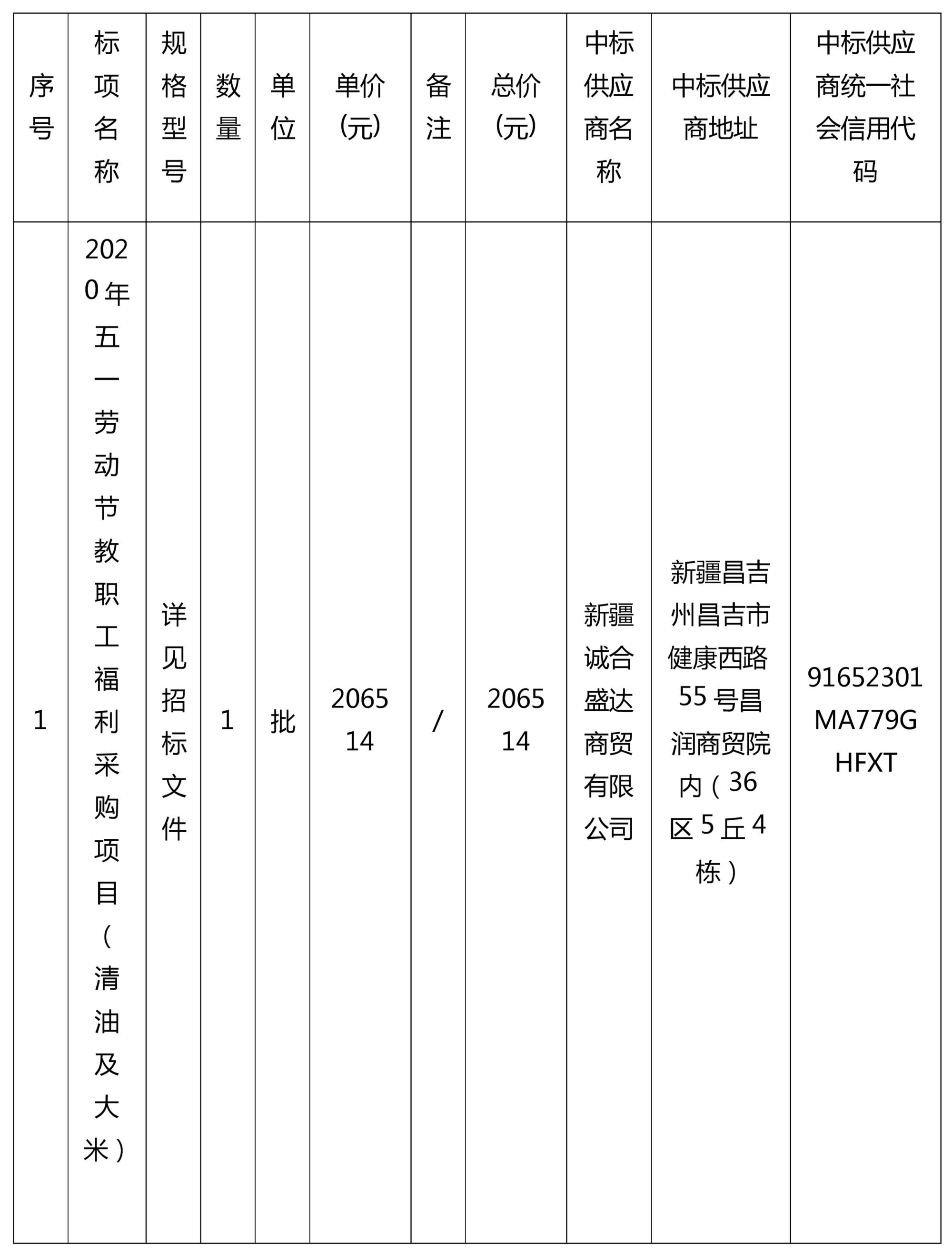 2020年五一劳动节教职工福利采购项目中标(成交)结果公告