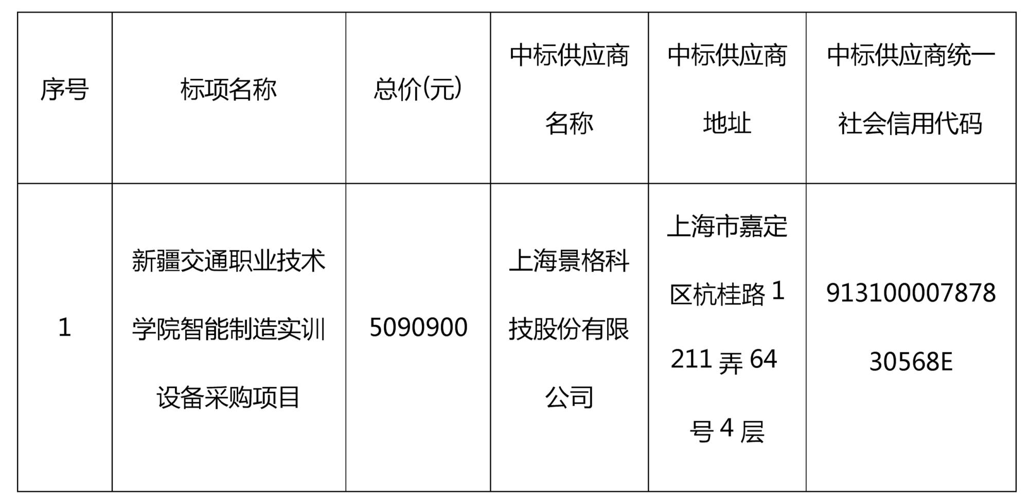 新疆交通职业技术学院智能制造实训设备采购项目中标结果公告
