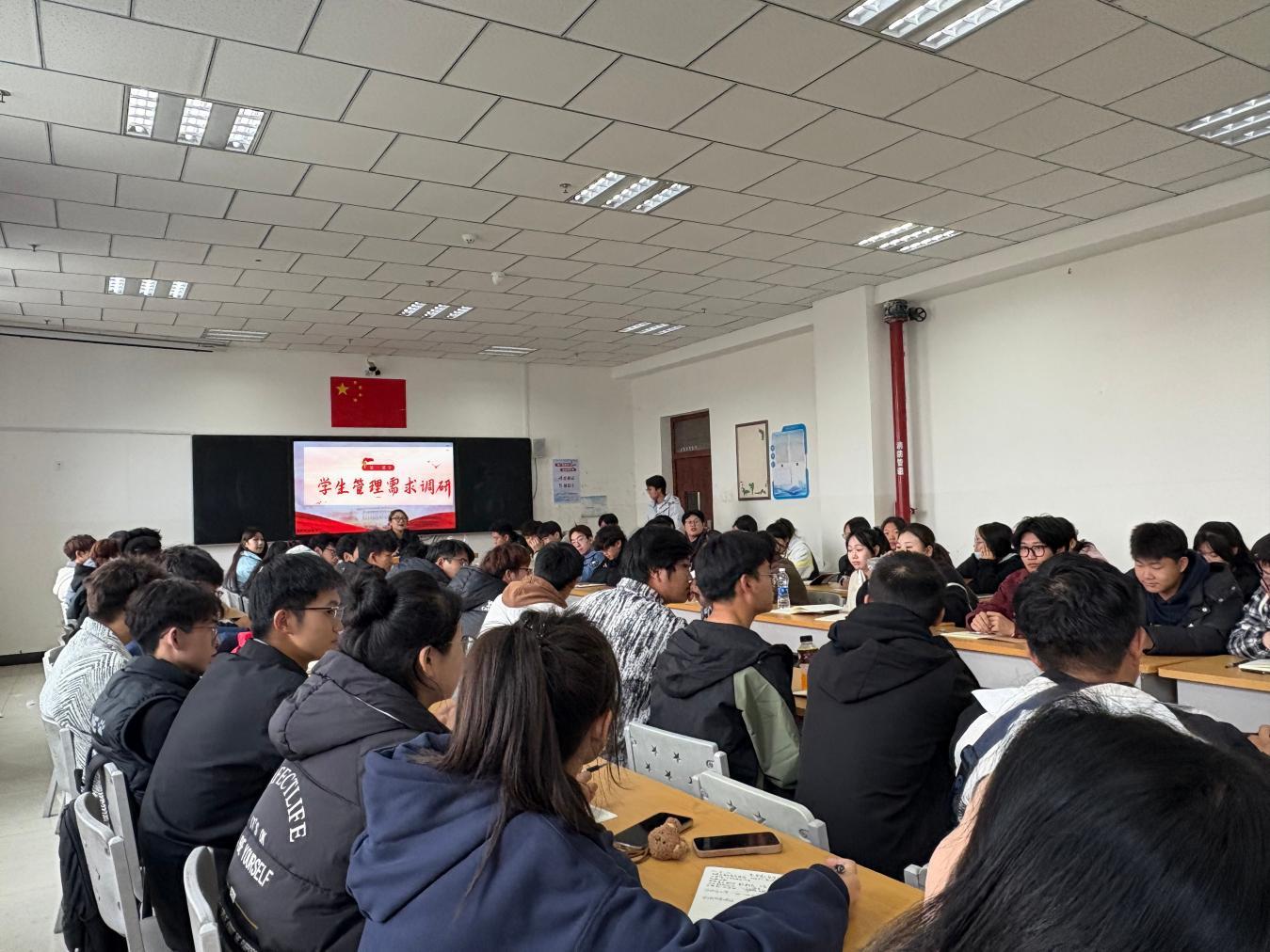 本次座谈会以“倾听学生心声、回应学生关切、优化管理服务”为主题,会上,学生代表们踊跃发言、畅所欲言,围绕学生管理、公寓配套服务、后勤保障、学生会干部管理等多个方面提出了宝贵的意见和建议。在学生管理方面,有同学建议进一步加强对学生心理健康的关注,增设心理辅导资源,建立更加人性化的预警与干预机制;在公寓配套服务方面,同学们普遍反映宿舍网络不稳定、热水供应楼层有限等问题,希望学院能与相关部门协调,提升生活便利度;在后勤保障方面,部分同学提出食堂饭菜种类单一、价格偏高,建议引入更多样化、平价化的餐饮选择;在学生会干部管理方面,同学们希望学生会能进一步增强服务意识,提升活动质量,真正发挥桥梁纽带作用。