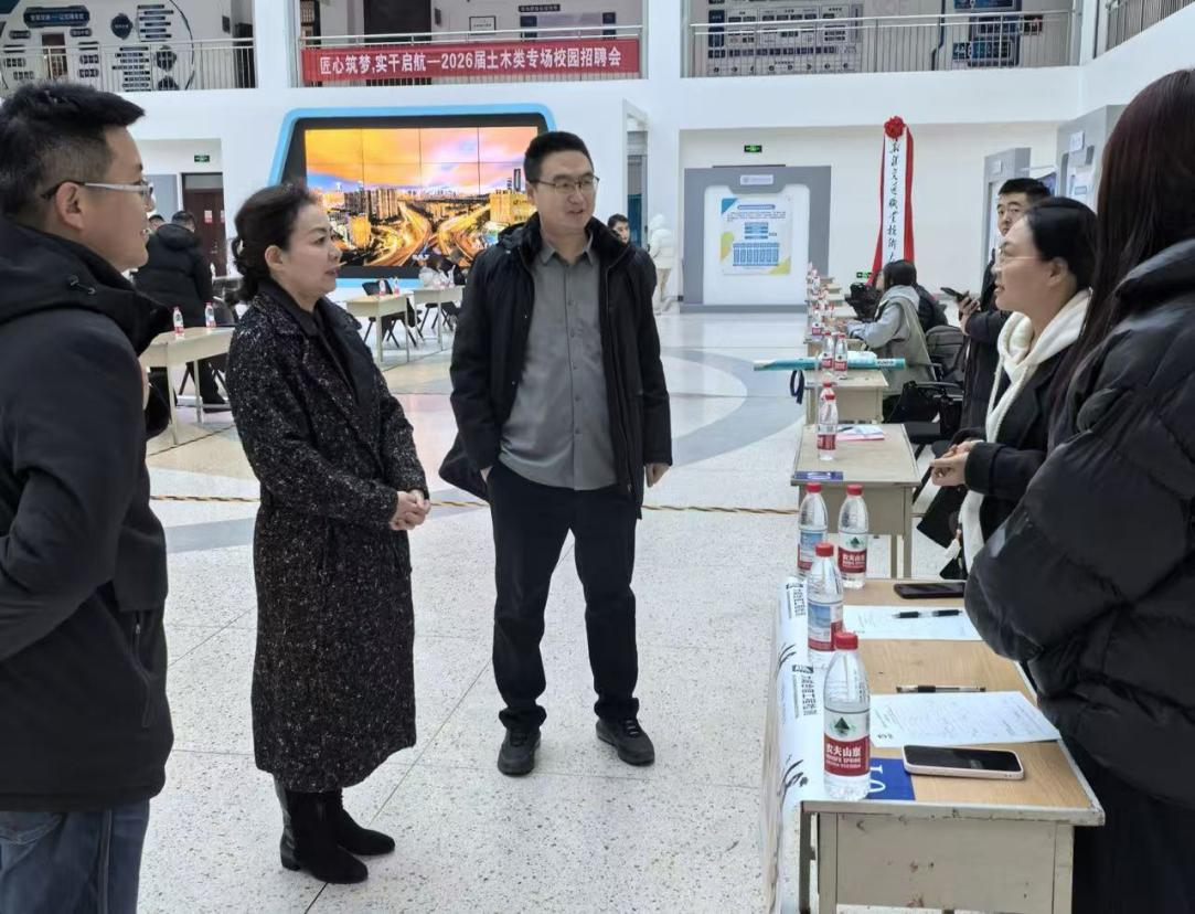 为深入推进学校“大学习、大调研、大讨论”活动走深走实,全力促进毕业生高质量充分就业,12月5日,道路桥梁工程学院举办“匠心筑梦,实干启航”2026届土木类专场校园招聘会。校党委常委、纪委书记刘昭参加招聘会并现场指导工作。